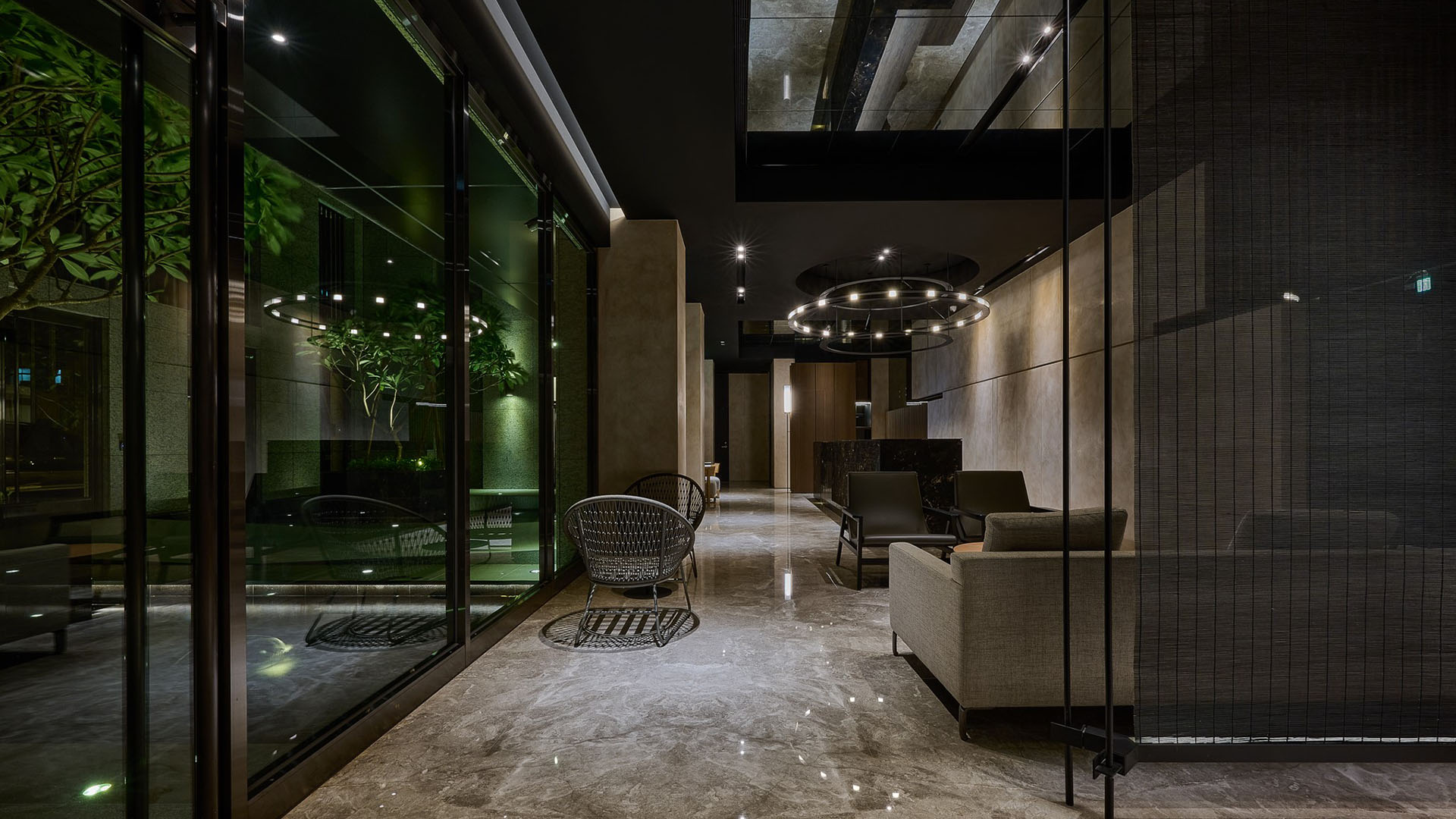 市中心少見的二進式門廳中庭水池,多了一層隱私守護,回家迎接你的是美麗的家樹與院落